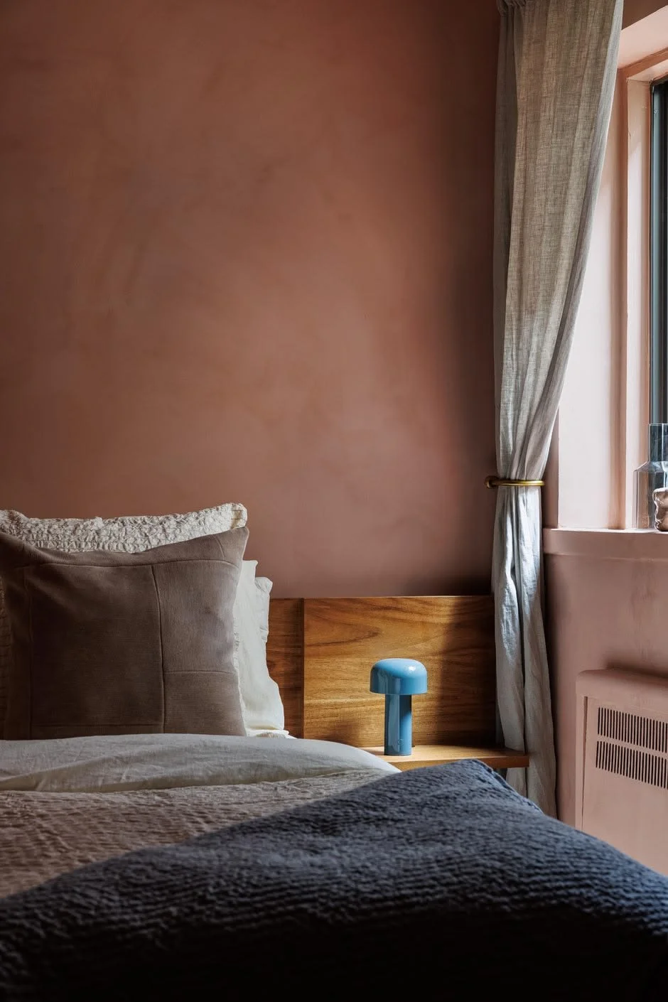 Lime-based paints and Roman clays offer a soft, matte, mottled finish that develops a patina over time. Beyond the aesthetics, they have a high pH, which makes them naturally antimicrobial and antifungal, improving indoor air quality.